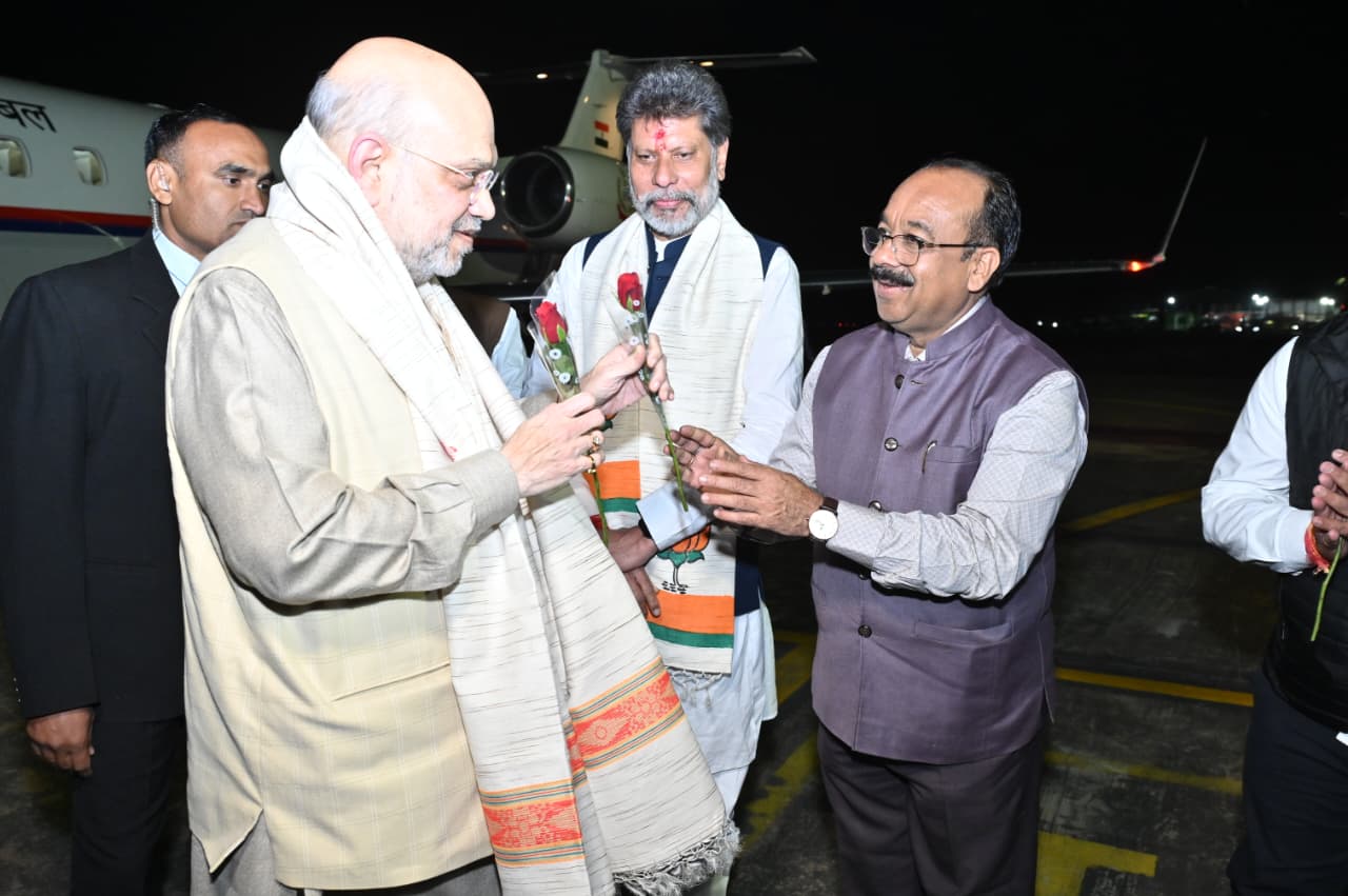 अमित शाह रायपुर पहुंचे, मुख्यमंत्री विष्णुदेव साय ने किया गर्मजोशी से स्वागत