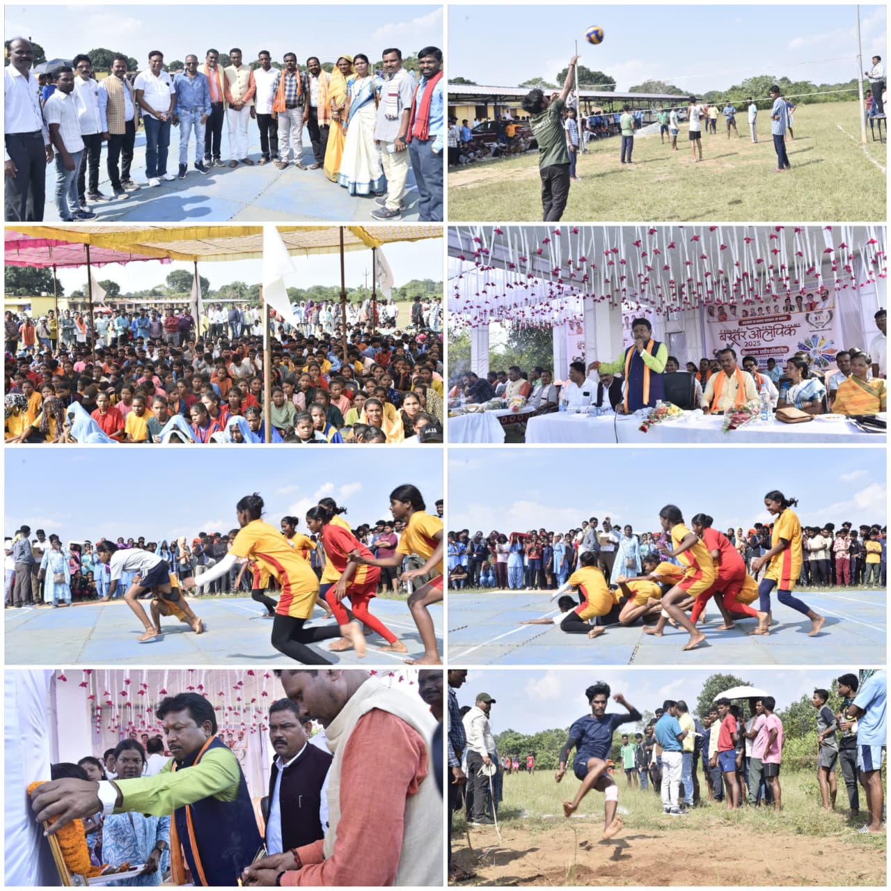 उद्घाटन अवसर पर खिलाड़ियों द्वारा परेड और पारंपरिक नृत्य प्रस्तुत किया गया, जिससे पूरा वातावरण उत्साह और उमंग से भर उठा। खेल मैदान में वॉलीबॉल, कबड्डी, दौड़, लंबी कूद सहित कई पारंपरिक खेलों का आयोजन किया गया।