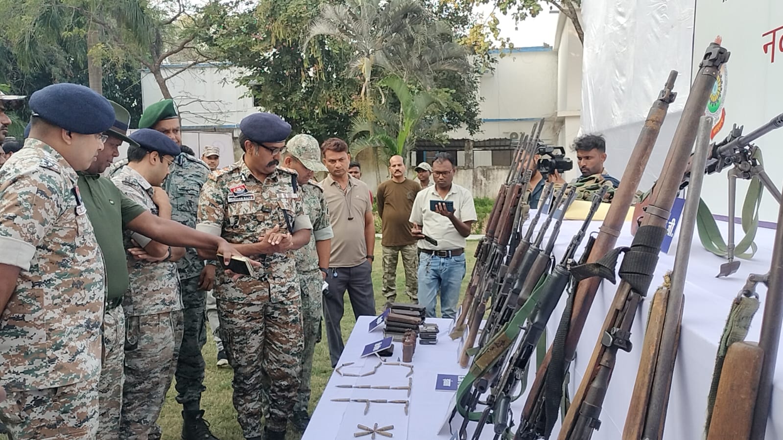 LMG, 4 AK–47, 4 SLR, 1 INSAS, 2 .303, 4 Single-Shot Rifle, 2 BGL लांचर, Muzzle Loading Rifle, रेडियो सेट, स्कैनर, मल्टीमीटर, ग्रेनेड, फ्यूज, माओवादी साहित्य, वर्दी, मेडिकल किट आदि।
