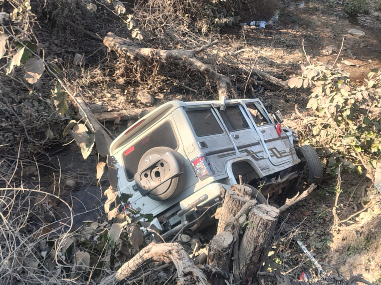 तेज रफ्तार का कहर: बोलेरो पुल से 15 फीट नीचे गिरी, पांच घायल