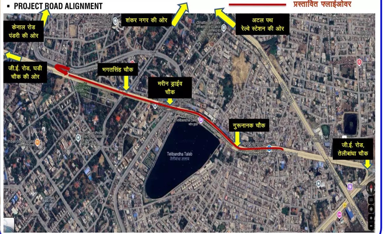 लोक निर्माण विभाग ने उप मुख्यमंत्री अरुण साव की मंजूरी के बाद जीई रोड पर गुरू तेगबहादुर उद्यान से तेलीबांधा में नेताजी सुभाष चौक से गुरूनानक चौक तक फ्लाईओवर के लिए 173 करोड़ रुपए की स्वीकृति दे दी है। यह लगभग डेढ़ किलोमीटर लंबा और 16.61 मीटर चौड़ा फोरलेन फ्लाईओवर शंकर नगर चौक, केनाल रोड क्रासिंग और गुरूनानक चौक के यातायात की समस्या को दूर करेगा।