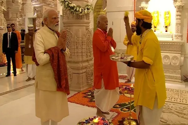 प्रधानमंत्री ने रामलला के दर्शन किए और उनके लिए विशेष वस्त्र तथा चंवर अर्पित किए। इसके बाद उन्होंने मंदिर परिसर स्थित सप्त मंदिरों में भी पूजा की। ये मंदिर महर्षि वशिष्ठ, महर्षि विश्वामित्र, महर्षि अगस्त्य, महर्षि वाल्मीकि, देवी अहिल्या, निषादराज गुह और माता शबरी को समर्पित हैं—जो भगवान राम के जीवन और आदर्शों से गहरे जुड़े हुए हैं।