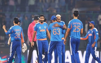 209 रन के लक्ष्य का पीछा करते हुए नामीबिया की शुरुआत लड़खड़ाई। स्पिनर वरुण चक्रवर्ती ने 3 विकेट झटककर मध्यक्रम को तोड़ दिया। अक्षर पटेल, जसप्रीत बुमराह, अर्शदीप सिंह और शिवम दुबे ने भी सटीक गेंदबाजी कर विरोधी टीम को संभलने का मौका नहीं दिया।